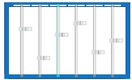 實(shí)驗(yàn)臺機(jī)架如圖2所示:機(jī)架中有5根鉛垂的活塞桿,它們可沿X軸左右移動,固定靠六角頭螺釘和蝶型螺母固定。需移動時請先將蝶型螺母松開,雙手推動活塞桿.并盡可能使它保持垂直狀態(tài);钊麠U上的滑塊可沿Z軸上下移動,用內(nèi)六角螺釘將滑塊緊定在活塞桿上。(注意:在移動立柱或滑塊時需用直尺或卷尺量出它們的相對位置再把螺釘擰緊。)