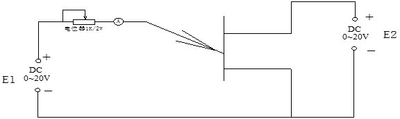 按圖2-2-13接線,按下控制屏上的“啟動”按鈕,然后緩慢調(diào)節(jié)電樞電源,電壓為20V,同時,監(jiān)視電壓表的讀數(shù),調(diào)節(jié)0~30V直流可調(diào)穩(wěn)壓電源電位器,電壓從零開始調(diào),同時監(jiān)視電壓表、電流表的讀數(shù),當(dāng)電流表的值突然增加,電壓表的值隨著0~30V直流可調(diào)穩(wěn)壓電源電位器增加突然下降到某一電壓值,繼續(xù)增加電壓值時,電流會一直增加,電壓基本保持不變,(電壓調(diào)節(jié)到20V時停止調(diào)節(jié))。表示管子正常工作,說明此時的管子是好的。