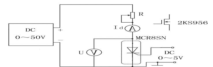 首先將絕緣柵型場效應(yīng)管(2KS956)接入主電路,主電路直流0~50V電源用屏上直流電樞電源,控制回路電源用0~30V直流可調(diào)穩(wěn)壓電源,把30V可調(diào)穩(wěn)壓電源電位器沿逆時針旋到底, 電位器選元器件測試箱上的1K\2W的電位器;電流表選用控制屏上20mA~2000mA的直流檔,直流電壓表選用100V的電壓檔