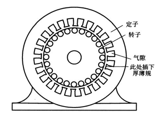 11) 氣隙的測量。氣隙通常用塞尺來測量。測量氣隙的方法如圖 1-5 所示。三相電動