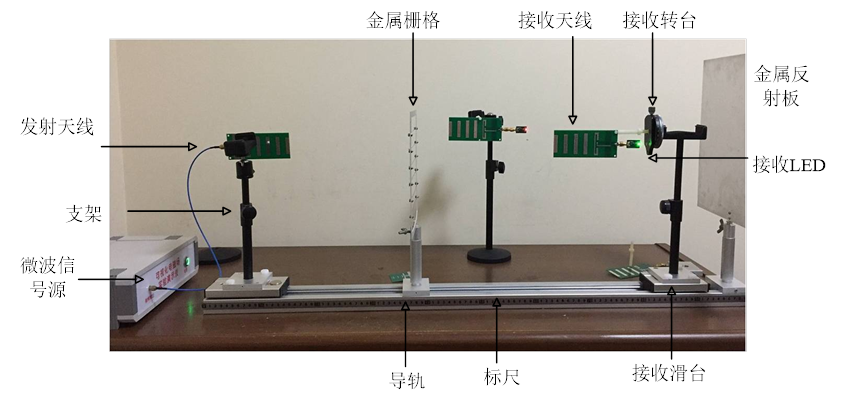 實(shí)驗(yàn)系統(tǒng)通過(guò)增大射頻信號(hào)發(fā)射功率,在不需專(zhuān)用儀表的情況下能感知電磁場(chǎng)存在、定性研究天線(xiàn)的極化方向、天線(xiàn)增益、天線(xiàn)頻響等性能;