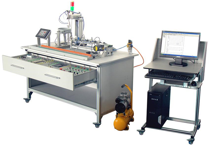 電一體化實(shí)訓(xùn)裝置提供的是一種綜合應(yīng)用設(shè)計(jì)的教學(xué)培訓(xùn)平臺,培訓(xùn)內(nèi)容涉及機(jī)、電、液、氣一體化專業(yè)的多學(xué)科知識。