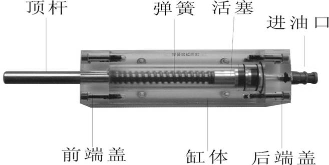 2、彈簧回位油缸的缸體,端蓋等均采用了進口透明有機玻璃材料精制而成,透明清晰,頂桿采用45#中碳鋼材料,并配合油接頭、密封圈、內(nèi)六角螺絲等標(biāo)準裝配而成,通過它可明確地觀察到活塞、頂桿、油封、油孔、彈簧等結(jié)構(gòu)及其運行過程,具有形象逼真,性能可靠等腰三角優(yōu)點,它既可作為教學(xué)模型,也可作為液壓實驗元件進行實驗演示。