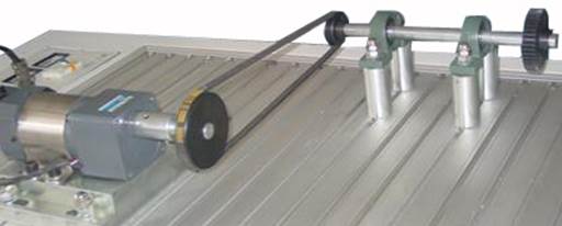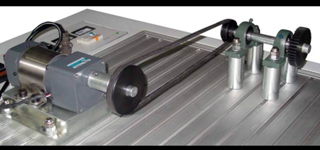 在這個實驗中,將執(zhí)行安裝步驟和校準V帶傳動系統(tǒng),保證兩傳動軸的平行度。完成搭接和校準后將在下個實驗中運行電機。