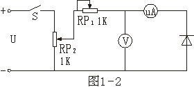 2、測(cè)反向特性,按圖1-2連線。