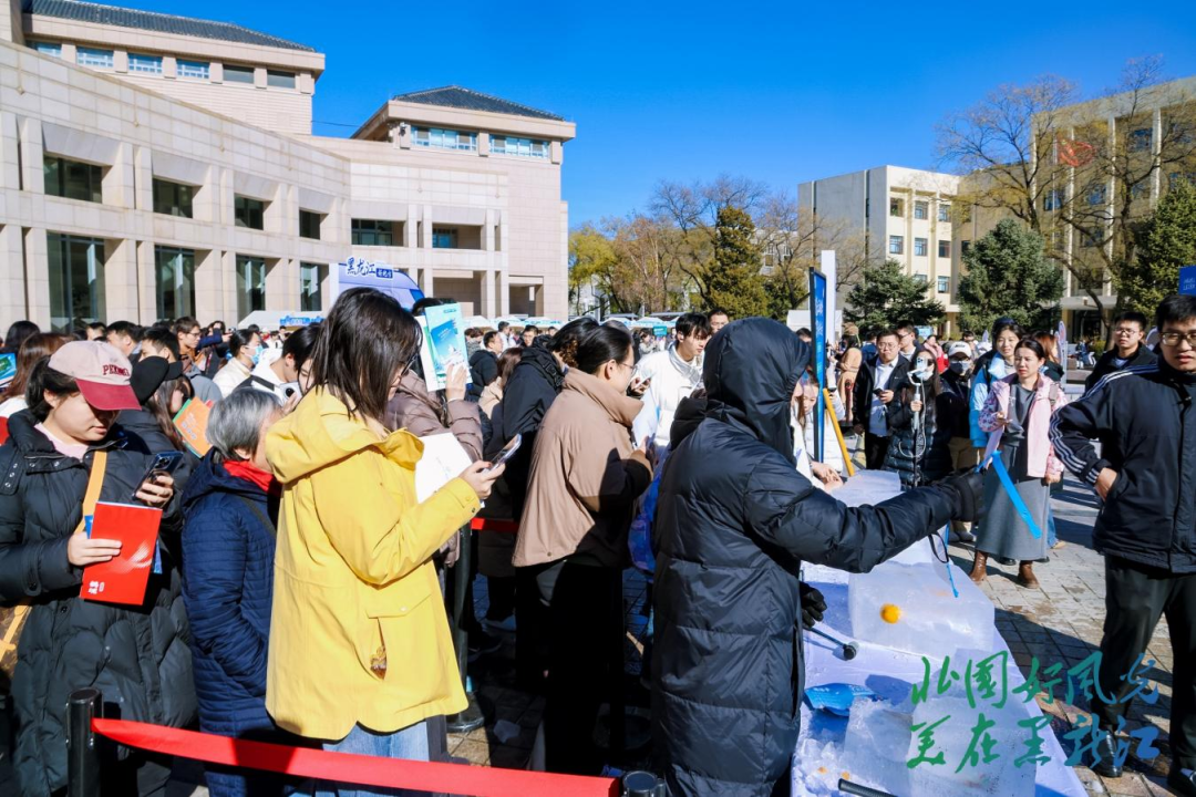 作為首度在高校開(kāi)展的大規(guī)模文旅人才招募和推介活動(dòng),黑龍江冬季旅游推介會(huì)在百周年紀(jì)念講堂李瑩廳舉行,黑龍江省13個(gè)地市相關(guān)部門(mén)通過(guò)“推介+展演”的形式,全方位呈現(xiàn)北國(guó)冰雪魅力。黑龍江冰雪風(fēng)光圖片展、文旅市集、快閃表演等活動(dòng)同步在講堂旭日廳與廣場(chǎng)舉行,讓北大學(xué)子在沉浸式體驗(yàn)中直觀感受龍江文旅特色,開(kāi)啟了“冰雪”與“青春”、“引才”與“興業(yè)”深度交融的新篇章。