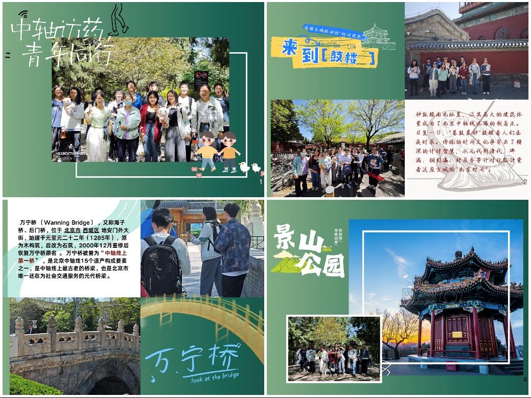 活動(dòng)中,團(tuán)支部成員以鐘鼓樓為起點(diǎn),沿中軸線南行探訪至景山公園。在鐘鼓樓下,同學(xué)們聆聽(tīng)古代計(jì)時(shí)與中醫(yī)藥文化間的關(guān)系;步行至什剎海畔,同學(xué)們踏過(guò)萬(wàn)寧橋,在萬(wàn)寧橋邊學(xué)習(xí)中軸線往事;景山萬(wàn)春亭中,團(tuán)支部成員分隊(duì)行動(dòng),聊古今,望故宮。在實(shí)地調(diào)研的全過(guò)程中,團(tuán)支部組織知識(shí)問(wèn)答、植物打卡等互動(dòng)環(huán)節(jié),讓文化探索充滿趣味與挑戰(zhàn)。