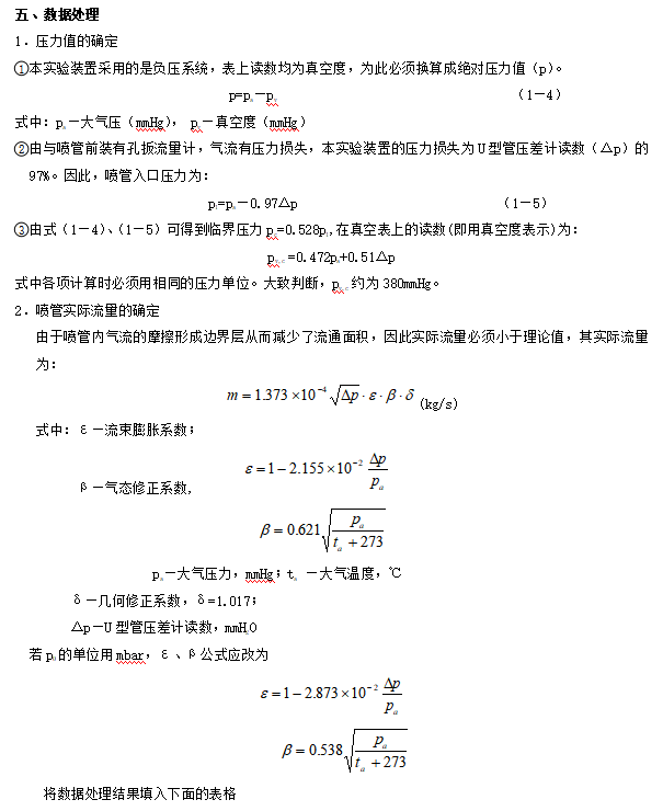為縱坐標(biāo),繪制流量曲線。3.根據(jù)條件計(jì)算噴管最大流量的理論值,并與實(shí)驗(yàn)值比較。