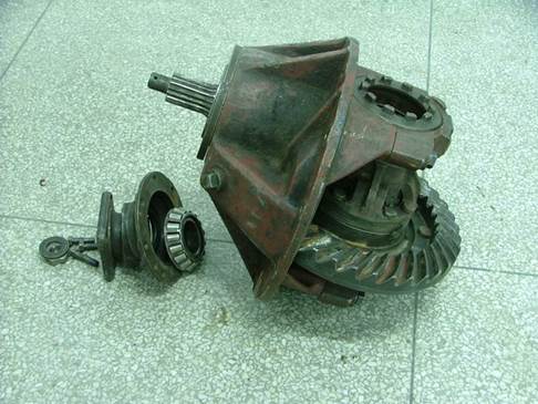 第四步:拆下主動雙曲線齒輪連接凸緣及油封座、錐齒輪軸承座,拆下主動雙曲線齒輪。