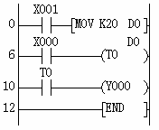 定時器的設(shè)定值,可以用常數(shù)(K)直接指定,也可用數(shù)據(jù)寄存器(D)間接指定。但間接指定值必須事先寫入數(shù)據(jù)寄存器里。