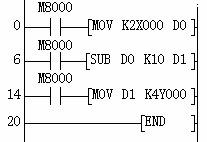 2、減法指令SUB(FNC21)