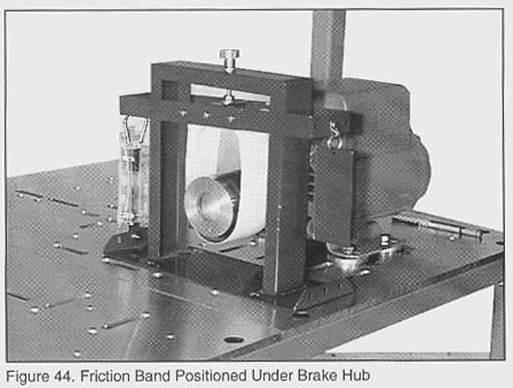 C. 確定制動帶擱在輪轂下方,如圖44所示;