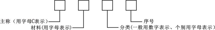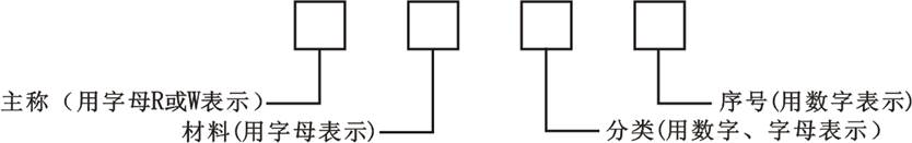 | 用字母表示主稱 | 用字母表示材料 | 用數(shù)字或字母表示分類 | ||||