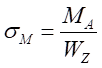 彎曲應力隨著距離對稱軸的距離大小不同而改變,但是其最大值是確定的,彎矩對A-A截面內圈處產(chǎn)生的彎曲正應力為: