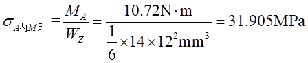 彎曲應(yīng)力隨著距離對(duì)稱軸的距離大小不同而改變,但是其最大值是確定的,彎矩對(duì)A-A截面內(nèi)圈處產(chǎn)生的彎曲正應(yīng)力為: