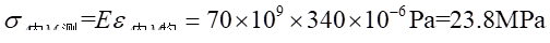 載荷F作用在試件(見圖8-1)的對(duì)稱軸線上時(shí),A-A截面有軸力,有彎矩,由于對(duì)稱條件沒有剪力。方框試件的彈性模量為70GN/m2。軸力引起的正應(yīng)力為: