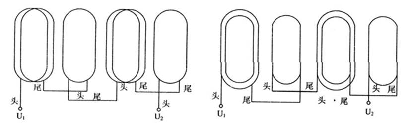 3) 線圈跨距的判別。繞組的線圈距可在拆線中查出。但必須注意同一繞組中可能有不等跨距的線圈(如交叉式、同心式等)。這些在拆線時要仔細記錄。