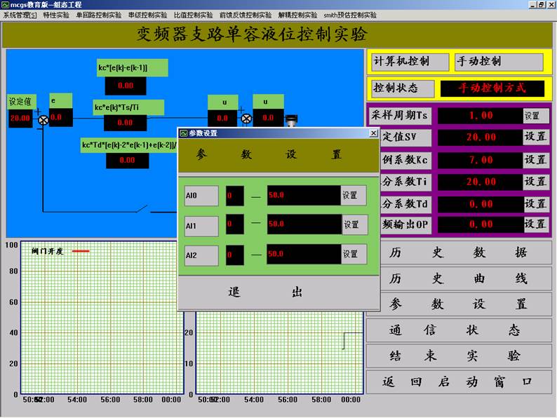 圖3.11 “變頻器支路單容液位控制實(shí)驗(yàn)”界面