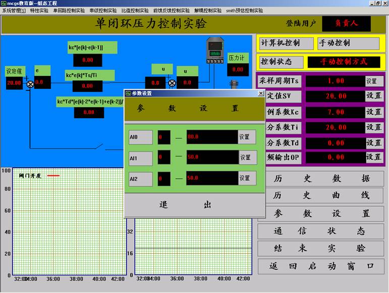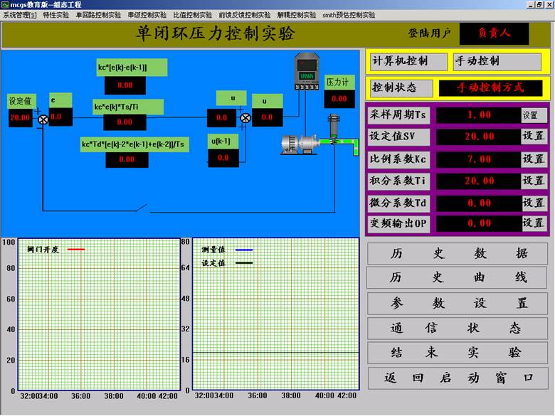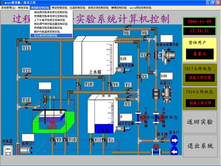 7.點擊“確認”,用戶登錄完畢。選擇“單回路控制實驗”下拉菜單中的“壓力單閉環(huán)控制實驗”。