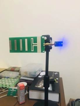 圖5垂直極化天線(xiàn)發(fā)射接收為蘭色和黃色LED燈