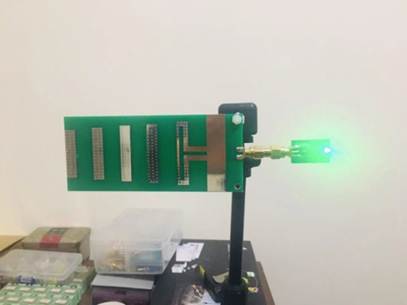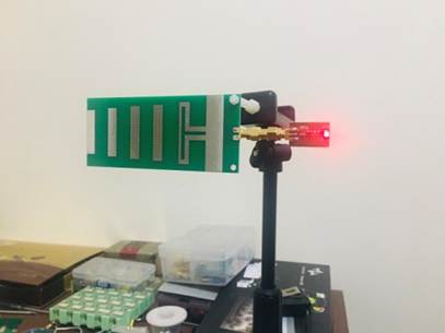 圖4垂直極化天線(xiàn)發(fā)射接收為綠色和紅色LED燈
