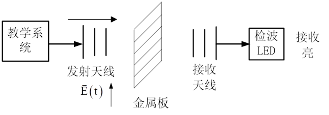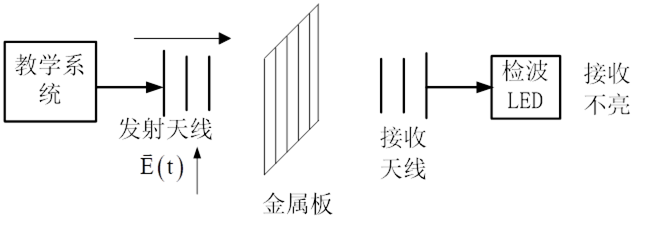 垂直極化波垂直入射到水平縫隙導(dǎo)體平面的透射波;由于滿足邊界條件可以點亮LED燈。垂直極化波垂直入射到垂直縫隙導(dǎo)體平面的透射波;電磁波被截止不滿足邊界條件LED不燈。