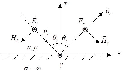 圖2 垂直極化波向理想導(dǎo)體界面上斜入射