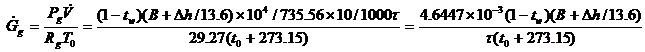 5. 根據(jù)流量計出口空氣的干球溫度和濕球溫度,從濕空氣的干濕圖查出含濕量(d,克/公斤干空氣),并根據(jù)下式計算出水蒸氣的容積成分: