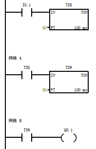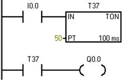 | 4 | = | Q0.0 | 延時時間到,輸出 |