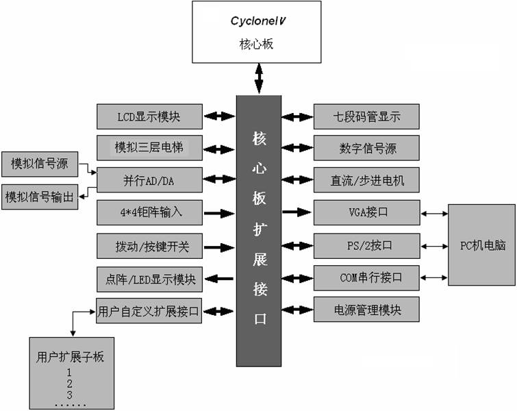 FPGA教學(xué)實驗系統(tǒng)是基于Altera CycloneIV器件而開發(fā)的一款數(shù)字邏輯(FPGA)創(chuàng)新開發(fā)平臺,它可以為開發(fā)人員提供以下資源: