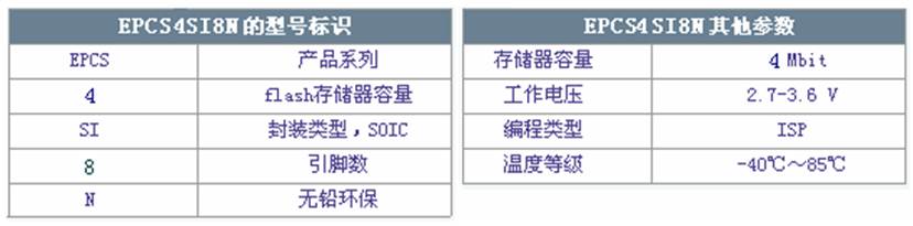 | U1 | EPCS4 | 4 Mbits主動串行配置器件 |