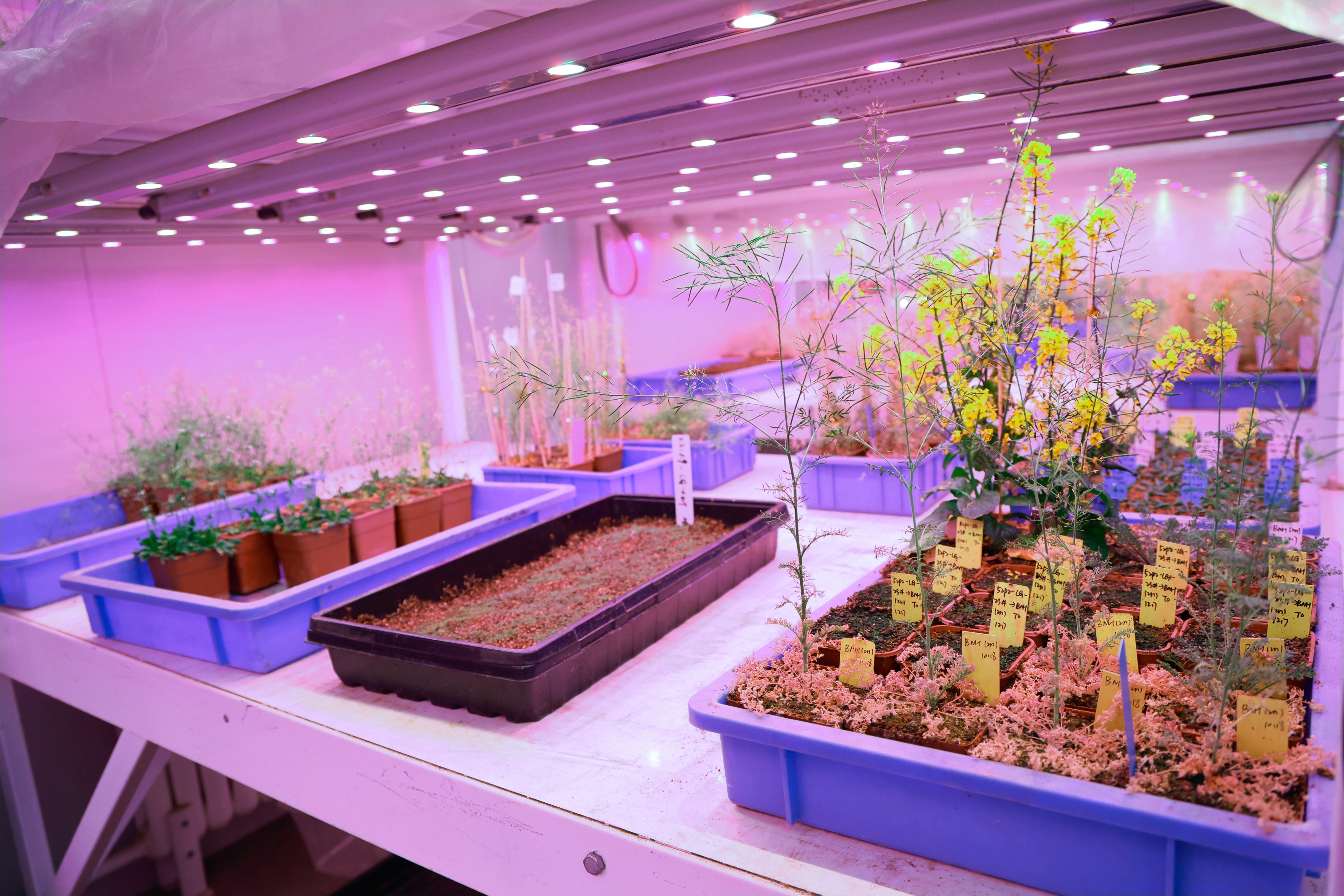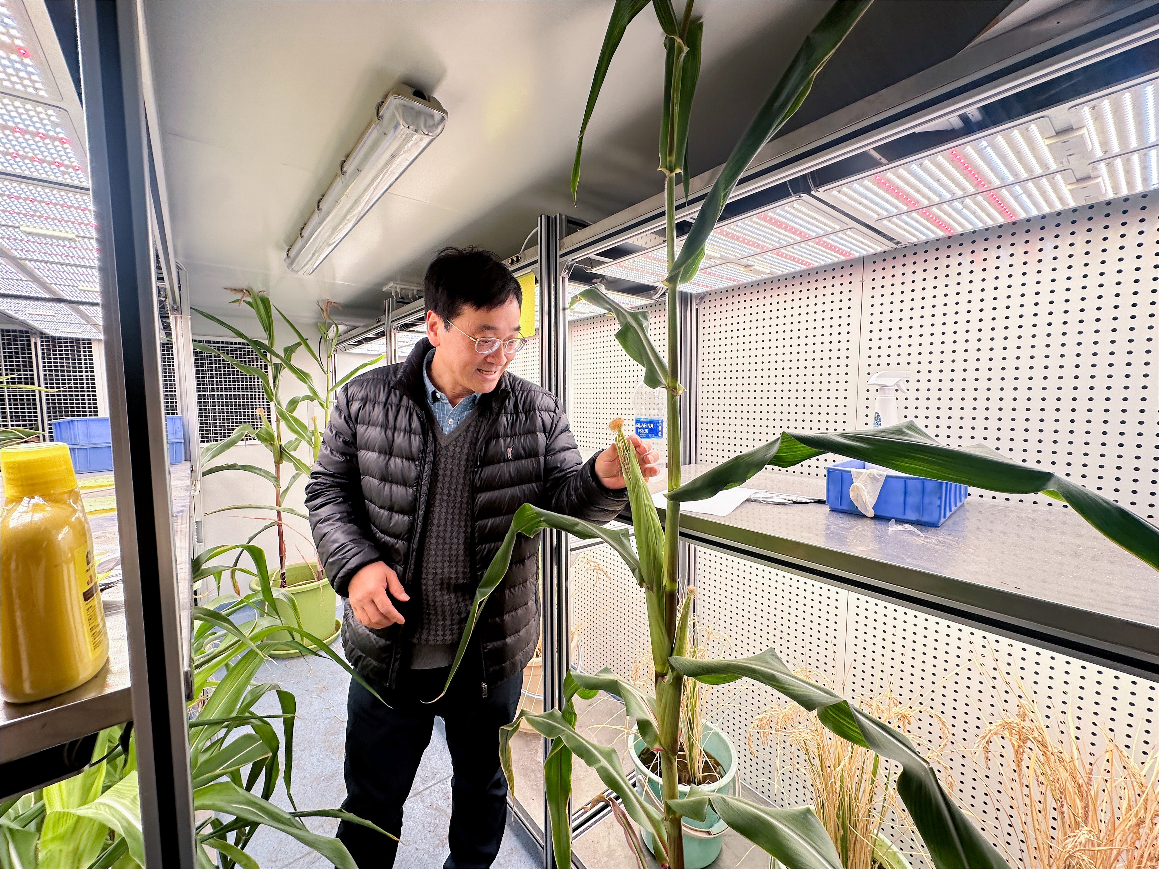 瞿禮嘉在實驗室察看實驗植物生長情況